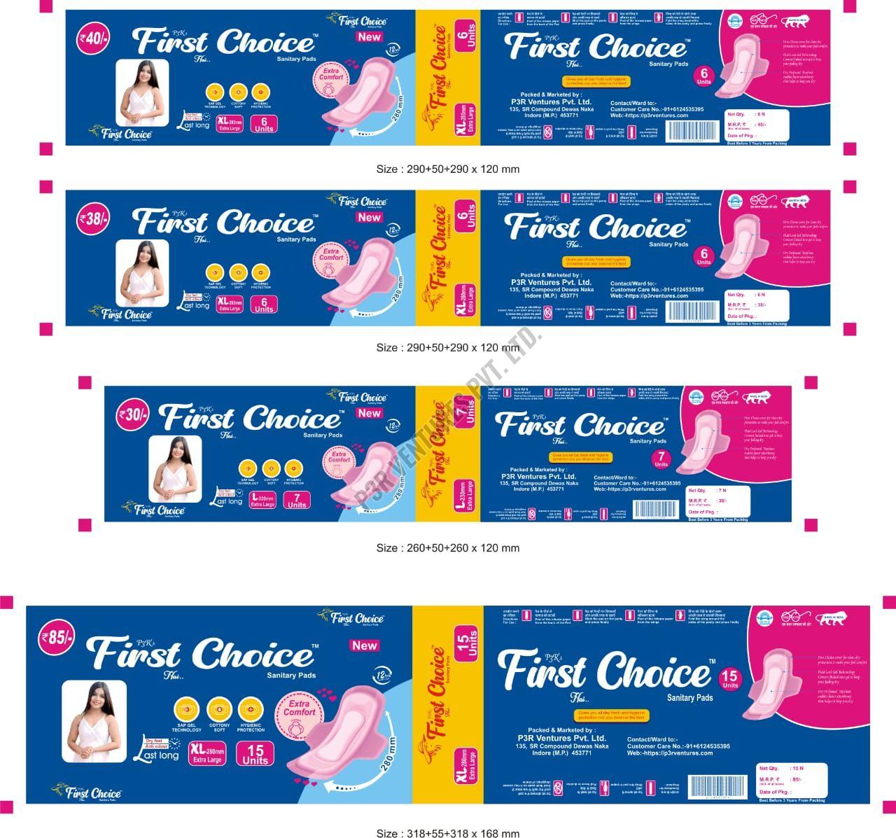 We are a leading Manufacturer, Exporter, Supplier, Distributor, and Trader of premium sanitary pads under the brand name First Choice. Our 8gm sanitary pad, made of soft cotton material, originates from India. With a size of 240-280mm, white color, and unscented fragrance, it offers regular absorbency. Packaged in a convenient plastic packet, this pad features a top layer of soft non-woven material for comfort and effectiveness. Experience superior quality and comfort with our 8gm Premium Sanitary Pad from First Choice.